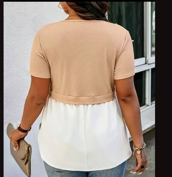 Plus Size Beaded Blouse - Apricot