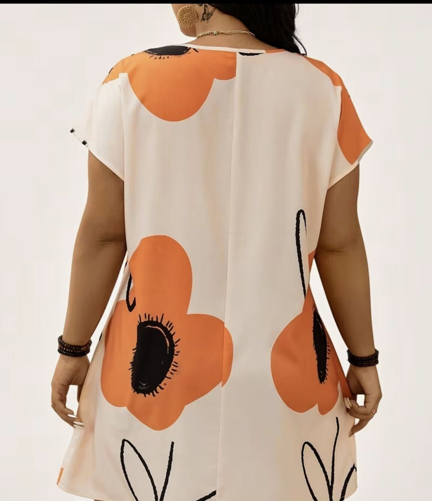 Plus size floral vee neck dress - Tangerine Orange